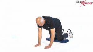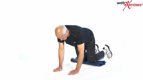 Begin on your hands and knees with the head and back in a straight position. Hands should be under the shoulders, hips directly above knees (can place a folded towel under knees for comfort).