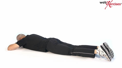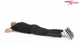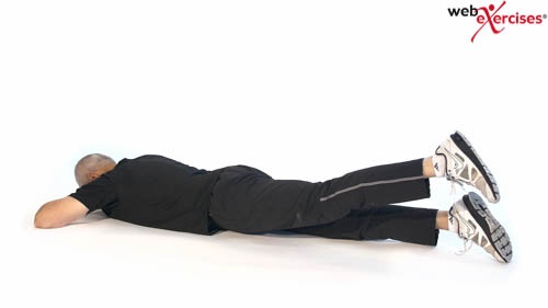 Begin lying face down on the floor. Bend elbows with hands under forehead or chin. Gently tighten abdominal muscles. Keeping leg straight, lift it upward off the floor 6 inches. Squeeze glut muscles to emphasis contraction. Slowly return to start position and repeat on opposite leg.
