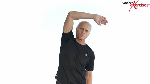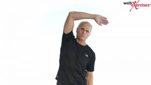 Begin seated or standing. Raise right arm up over the head and stretch toward the opposite side. Hold for 20 seconds and repeat on other side.