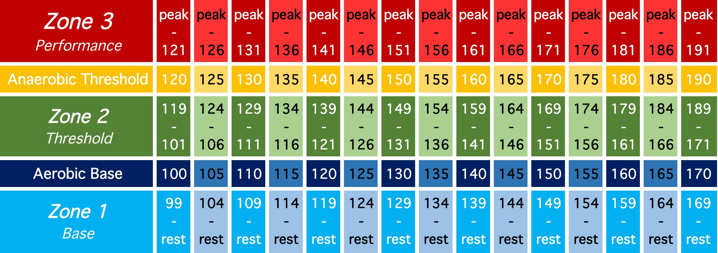 Once you have your AT heart rate from the modified AT test, it is simple math to determine the zones.