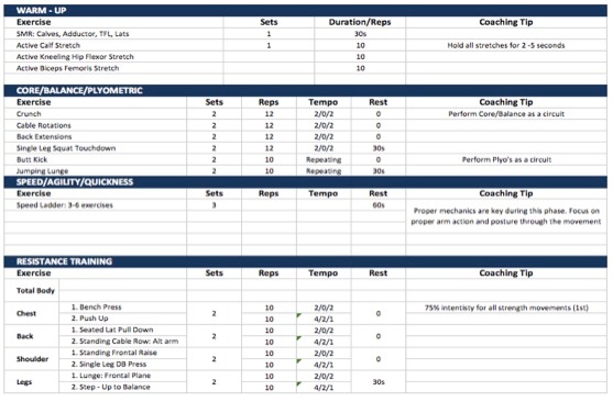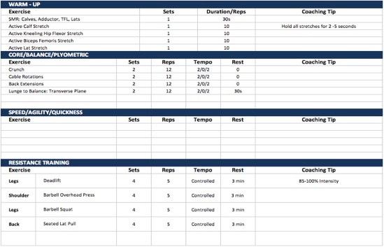 (The program will include Phase 1, 2, 4 and 5 of the OPT model. Phase 3 (Muscular Development) is not included in this plan because it is not related to the goal.)OPT Model Hypertrophy