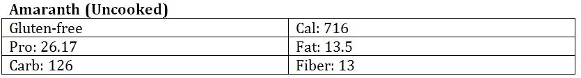 High in calcium (307 mg) and magnesium (479 mg), amaranth has been studied for its anti-inflammation, cancer and CVD prevention possibilities (6,7). Amaranth is gluten-free.