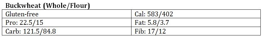Buckwheat, a pseudo-grain, is gluten-free and great for making pancakes and soba noodles. Added benefits of buckwheat include that it is high in magnesium and niacin, is a prebiotic, helps control diabetes by lowering blood glucose levels, lowers cholesterol and is high in satiety (8,9).