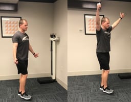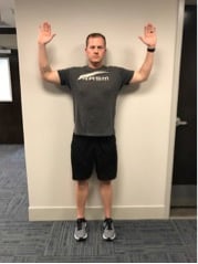 Overhead position (elevated stress test) - One of first, and easiest, tests to perform is a simple overhead position. Have the client reach both arms overhead, as though they were going to perform an overhead squat. While holding this position, have the client close and open their fist at a moderate pace for three minutes (Armstrong & Hubbard, 2016). These authors suggest that TOS may be present if there is an increase in symptoms on one side compared to the other.