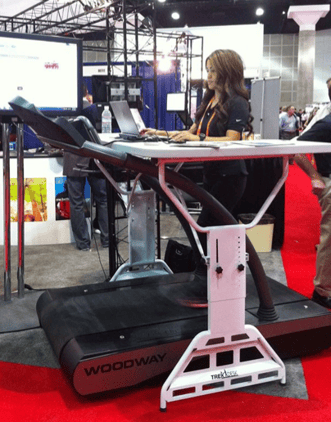 Knowing that NEAT levels drop significantly with weight loss, monitor initial NEAT levels using daily steps, and make sure steps do not decrease. Steps may need to increase with weight loss to offset the drop in BMR. There is a link between higher step counts and more significant weight loss. [11] When I read Dr. Levine’s research on NEAT, I make shifted a treadmill desk by placing a boogie board on my treadmill so I could switch from being sedentary for 8+ hours a day to walking at 2.0 mph for a few hours a day while I worked on my computer and had conference calls. I burned an extra 350+ calories a day during my workday without having to do more cardio. Talk about a game-changer! It must've been karma because I ended up winning the TrekDesk (see image), which Dr. Levine helped invent, and I've been using it for the past ten years, which has helped me increase my daily calorie expenditure and make maintaining a healthy weight much more manageable.