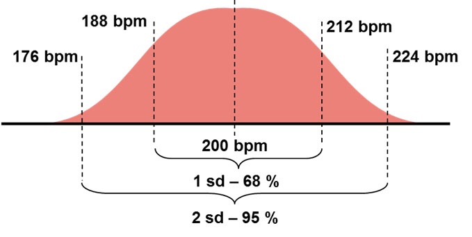 Figure 1-1: The standard deviation for the 220 - Age formula using 20-year olds as an example.