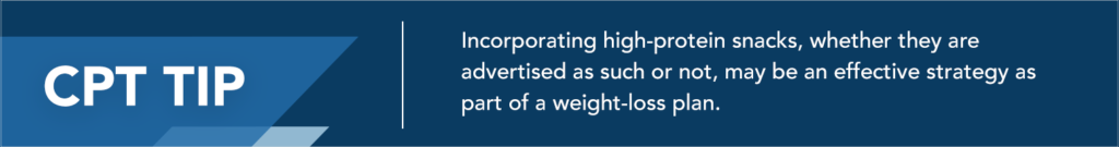For example, in one study, high protein snacks allowed people to go longer between eating and also caused them to eat less at subsequent meals (2).