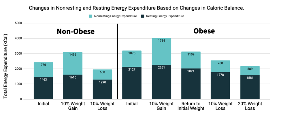 Another study conducted that examined this question, but from the perspective of food intake. Essentially asking the question of, if your body is out of weight balance, will your food intake behaviors change to prevent you from losing weight?
