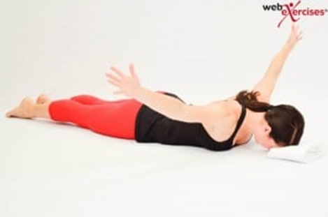 Lay down in a prone position. Fully extend the arms in a “T” position. Retract the shoulder blades to move the arms off the floor. Hold the position for 2 seconds, slowly release, and repeat for the desired number of repetitions. Note that your client’s range of motion for this exercise will improve with practice over time.