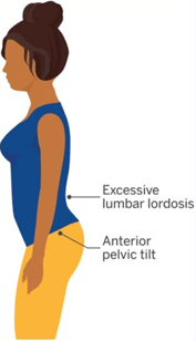 Secondly, when assessing static posture, certified health and fitness professionals must look for obvious deviations from optimal or ideal static posture. For example, an exaggerated anterior pelvic tilt, excessive lumbar lordosis, and flexed hip joints, as with lower crossed syndrome (Figure 3).
