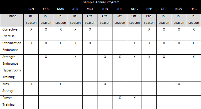 The goal of an off-season program should focus on reconditioning the entire kinetic chain and developing a baseline level of fitness (flexibility, stamina, strength, power).