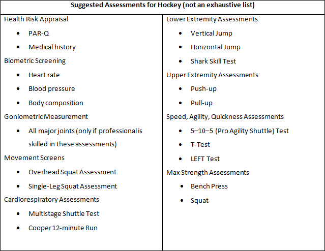 Hockey is arguably the quintessential competitive sport of the cold weather season. Here we'll discuss the unique demands of ice hockey and how sports performance professionals can safely and effectively implement conditioning programs to maximize an athlete’s performance on the ice. The sports performance professional will focus on two primary objectives; decrease risk of injury and improve “on-ice” performance.