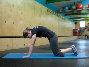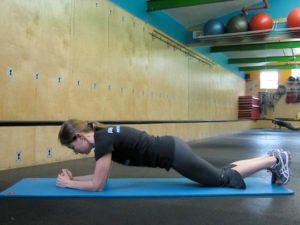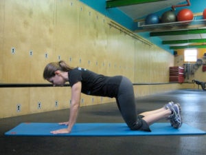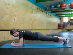 Core strength can also be accomplished by performing deep breathing exercises, pelvic tilts, planks, modified pushups and other bodyweight exercises that engage the abdominals. It is important to avoid deep twisting through the midsection and quick twisting movements like bicycle crunches that add additional stress to the already stretched abdominal wall during and soon after pregnancy.