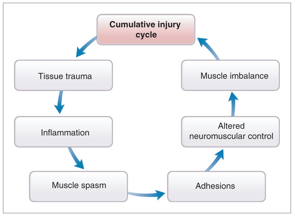 Postural distortion patterns such as upper crossed syndrome and faulty swim technique can further predispose someone to this injury (5,6,7). In addition, fatigue and the resulting swim-stroke adjustment to remain pain free further push this injury into a cycle of dysfunction (5).