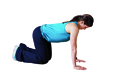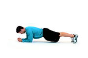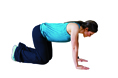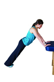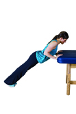 - Get into a push-up position (a more upright push-up against a desk is fine), feet together, abdominals tight, body straight, hands slightly more than shoulder-width apart.