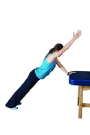 - Slowly slide both arms up the wall, keeping the elbows and wrists touching the wall, trying not to let the back arch. Then slide back down. Repeat.